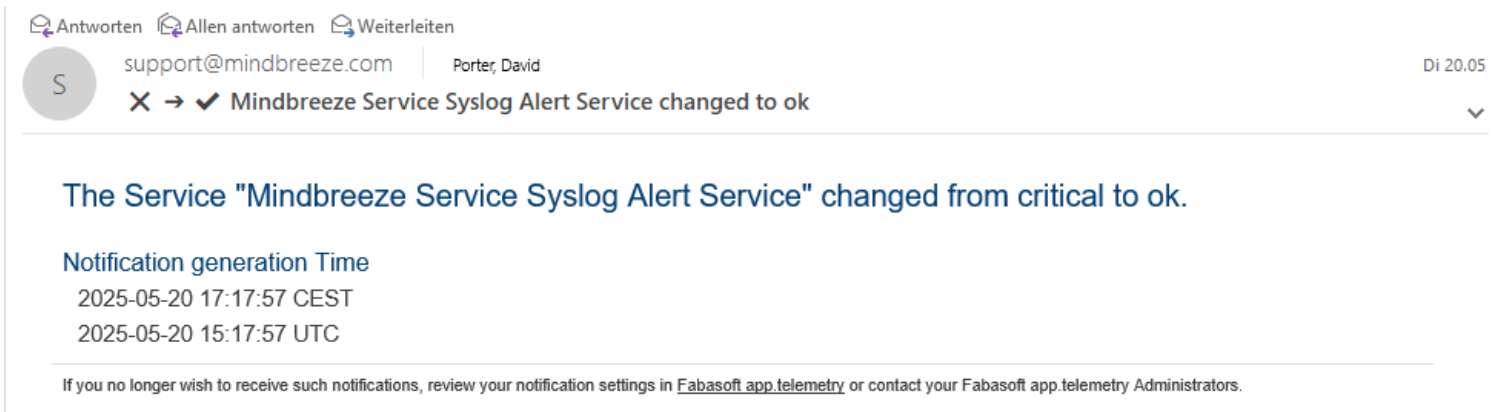Sollten Fehler oder Warnungen behoben sein, erhalten Sie eine Email-Benachrichtigung, die zum Beispiel so aussehen könnte: