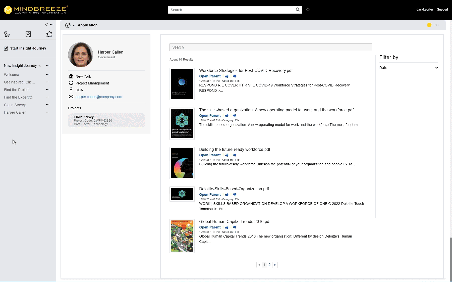 Mindbreeze Insight Journeys werden automatisch im Mindbreeze Insight Workplace erstellt und gespeichert. Sie aktualisieren sich in Echtzeit und greifen dabei jederzeit auf die aktuellsten, verlässlichsten Daten zu.