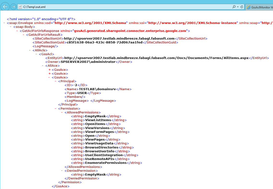 GetAclForUrls Content-XML: